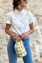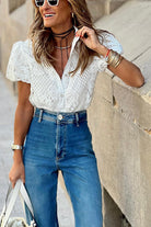 Lace Puff Sleeves Button Up Blouse
